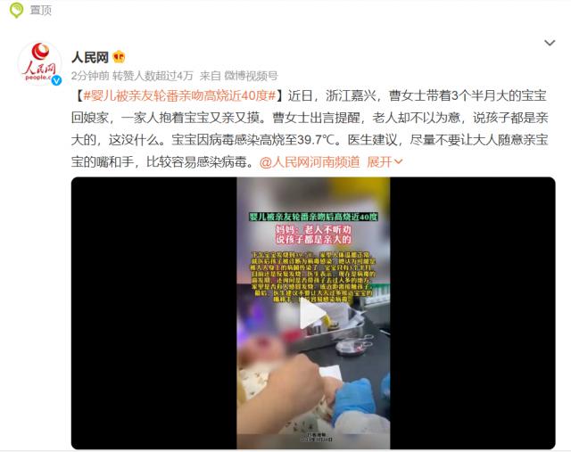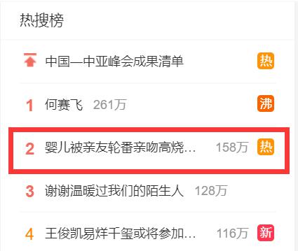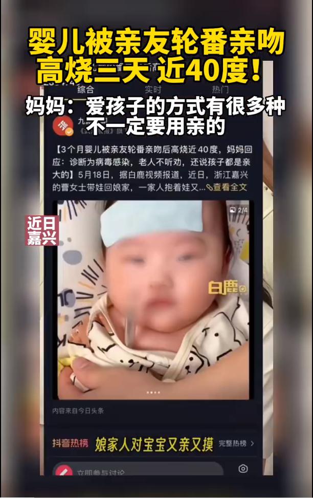 5月21日,#婴儿被亲友轮番亲吻高烧近40度 #登上热搜,引发网友热议。