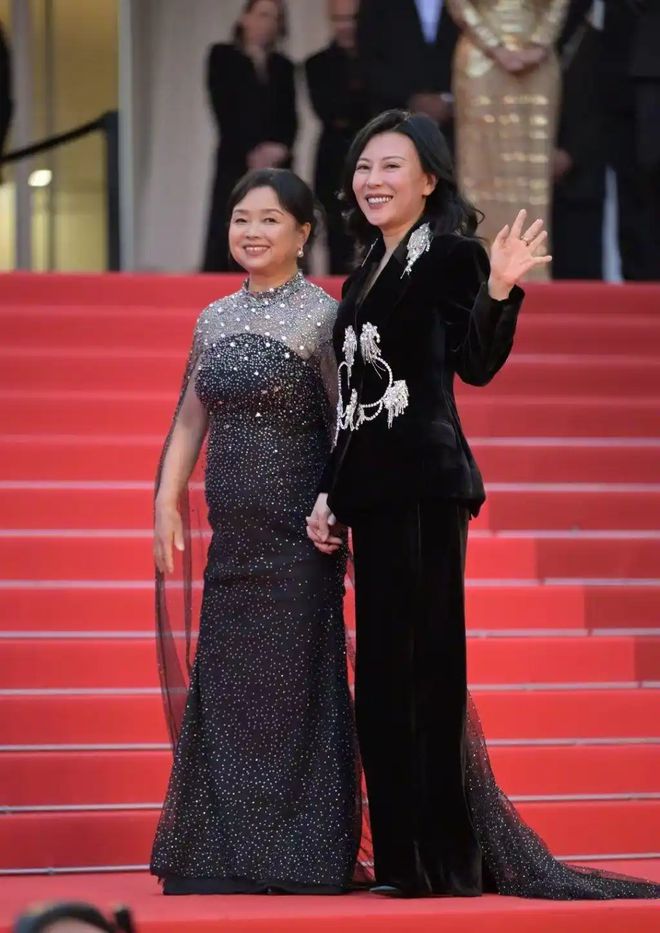法国当地时间5月16日,第78届戛纳电影节现场,中国电影《出走的决心》导演尹丽川与原型人物苏敏携手亮相红毯。