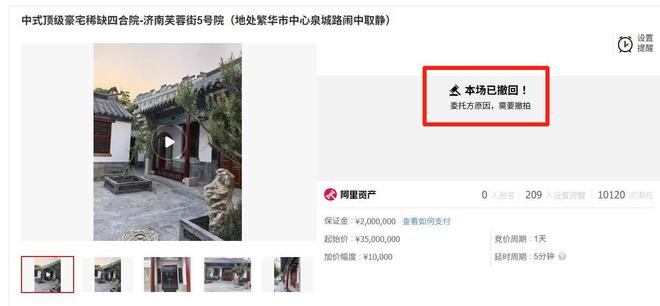 山东济南市区一古色古香的四合院将以3500万元起拍价拍卖,一度引发网友关注。不过,情况发生了变化。8月5日,极目新闻记者从该四合院受委托方处获悉,拍卖现已撤销。