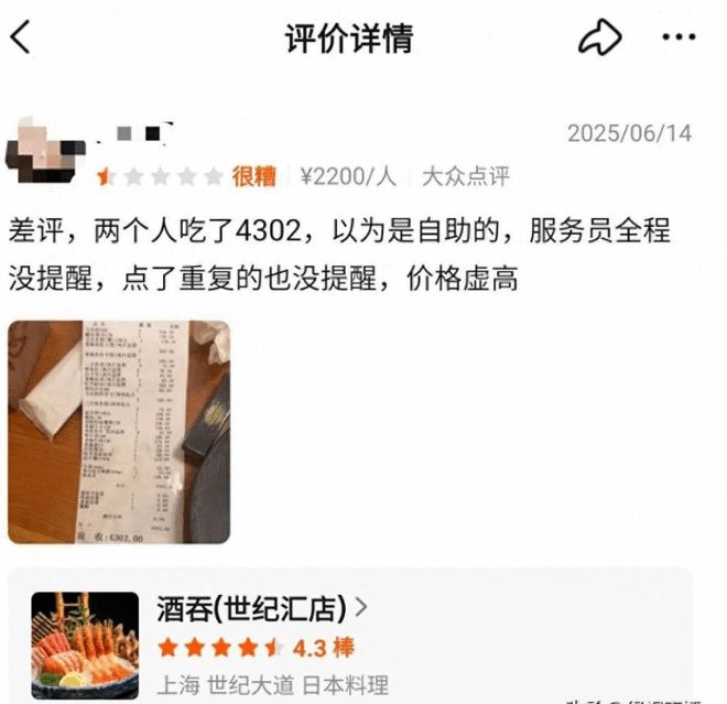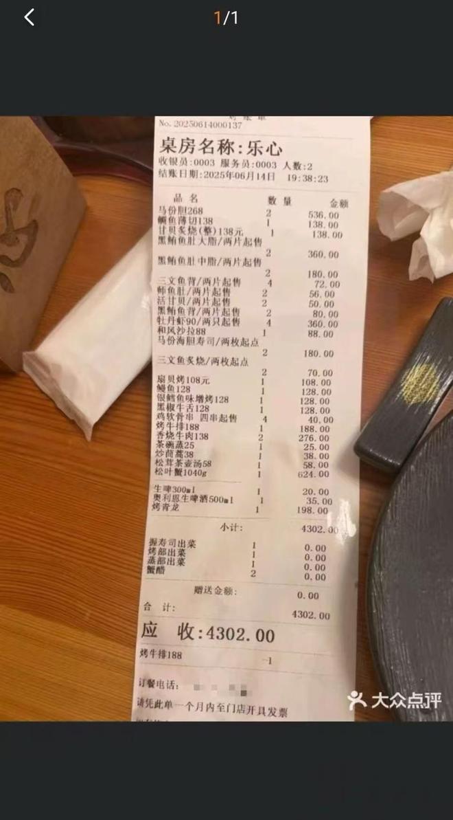 近期,有网友在社交平台发帖称,其在上海浦东新区一日式料理店就餐时,因误以为该店销售的套餐是自助形式,故在点单时点了不少菜,最后结账时发现消费金额竟高达4302元。