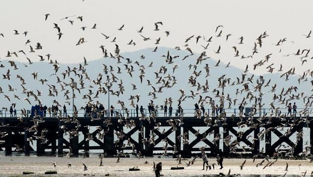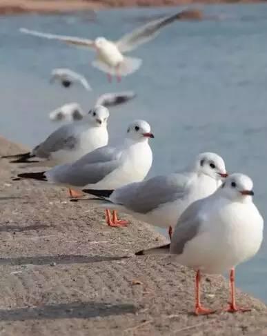红嘴鸥是冬候鸟,每年10月末到第二年4月底在青过冬,随后继续往北飞;而银鸥和黑尾鸥则是一年四季长留青岛。