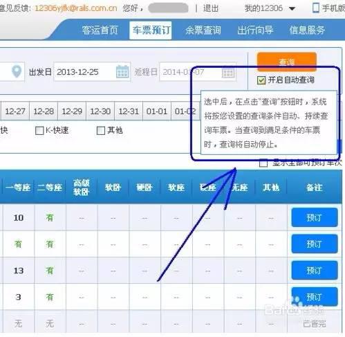 而且在今年的新版的售票界面里,有一个“自动刷新”功能(如下图)。选了自动刷新后,会自动刷新页面,有助于提高抢票效率。