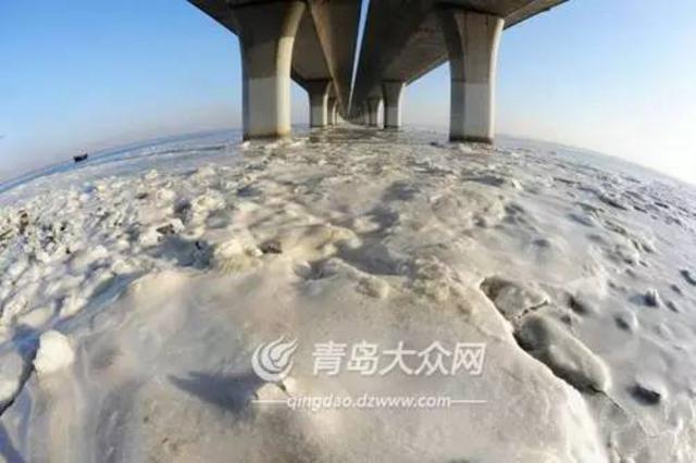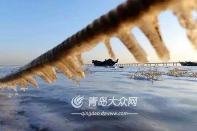 1月22日上午9时许,大众网记者在青岛市黄岛区红石崖胶州湾大桥附近海域看到,海冰已经封住绵延数公里的滩涂,许多渔船被冻结在冰面中,缆绳上缀满着成排的冰溜子。