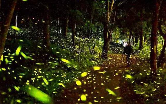 四、五月是春天气息被挥洒得淋漓尽致的月份,进入百花绽放的同时,夜晚也正是萤火虫在林间飞舞的时候,可以把握好这难得机会,进入林间细细欣赏宛如落下凡间的“青色萤河”。