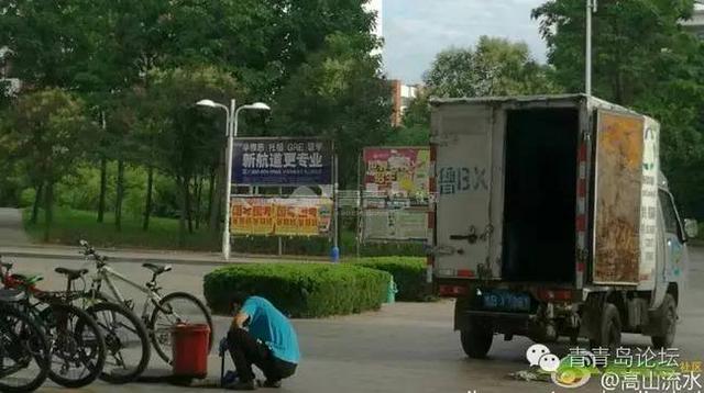 7月10号早晨六点钟左右,在山东科技大学黄岛校区“乡米香米”饭店外面,有一人打开古力井盖,用长勺在捞地沟油,装了满满一车。