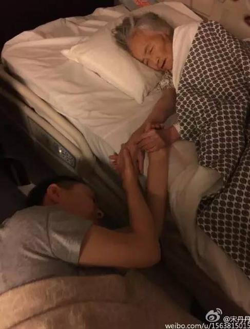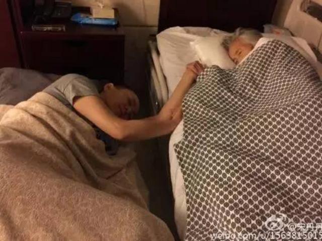 微博中,她晒出一组与生命垂危的母亲四手紧握的照片: