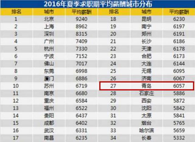 所以青岛市的平均工资6057元,