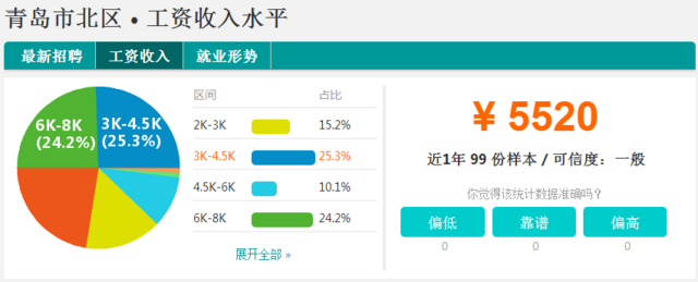 城阳区的平均月薪4580元,