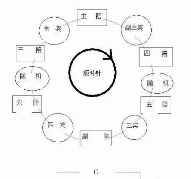 其余的位置宾主可以随便坐,酒桌上戏称这些人是“不三不四”,原因是酒桌上没有“三宾”、“四陪”的叫法。