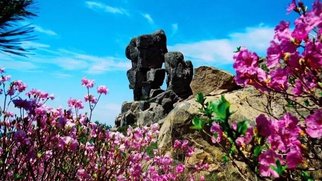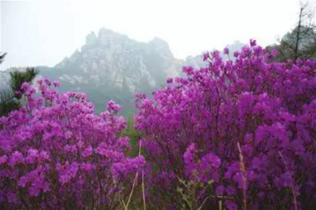 “人间四月芳菲尽,山寺桃花始盛开。”远山起伏连绵,浅紫淡粉的杜鹃绽放峻山,冷峻柔情恰似春如玉。