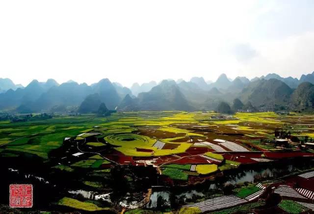 对于兴义,明代知名地理学家徐霞客似乎尤为偏爱,“天下名山何其多,唯有此处成峰林”“磅礴数千里,为西南奇胜”,短短两句,便概括了万峰林的美景。金色的油菜花田下,座座山峦在花间伫立,一个小小的村庄在田里悠哉的过着属于自己的生活。