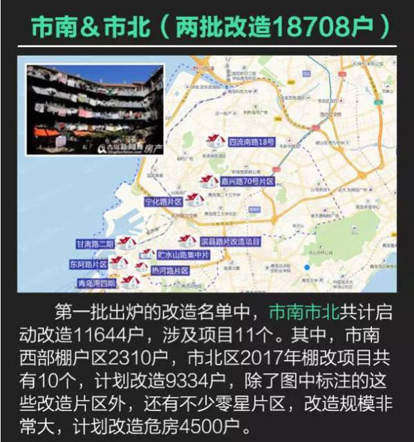 此前,2017年青岛棚户区三批改造计划正式公布。2017年,青岛共计划实施棚改项目85个,惠及市民48219户。快来看一下吧!