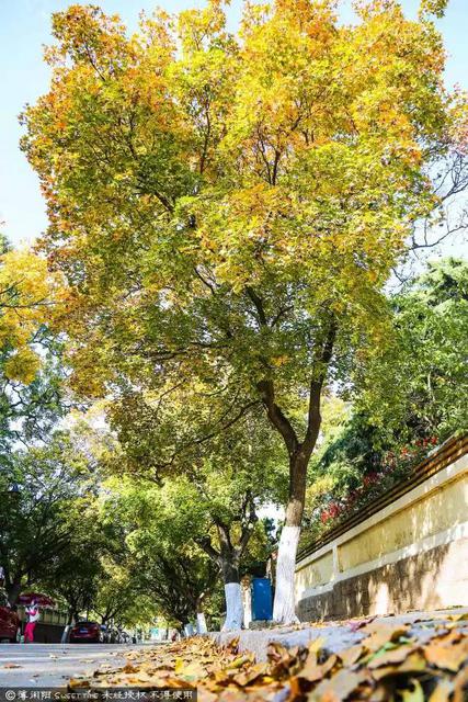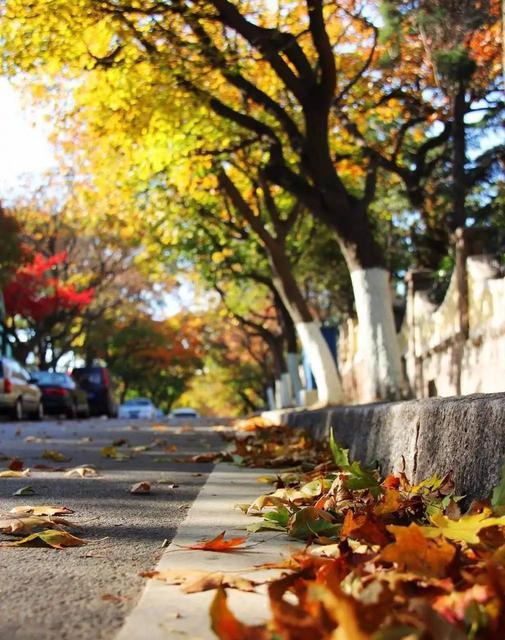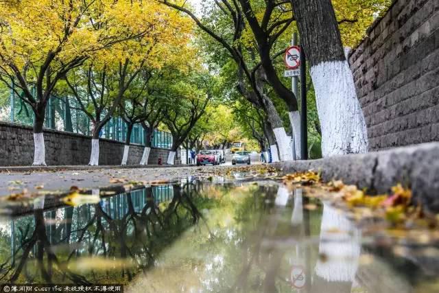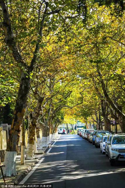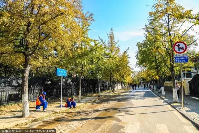 道路两旁银杏遍布,每至深秋,层林尽染,