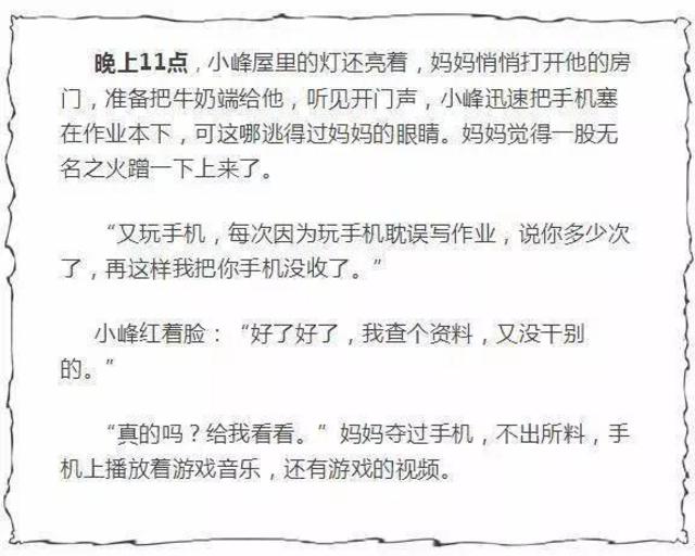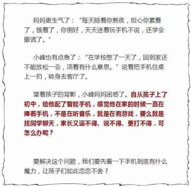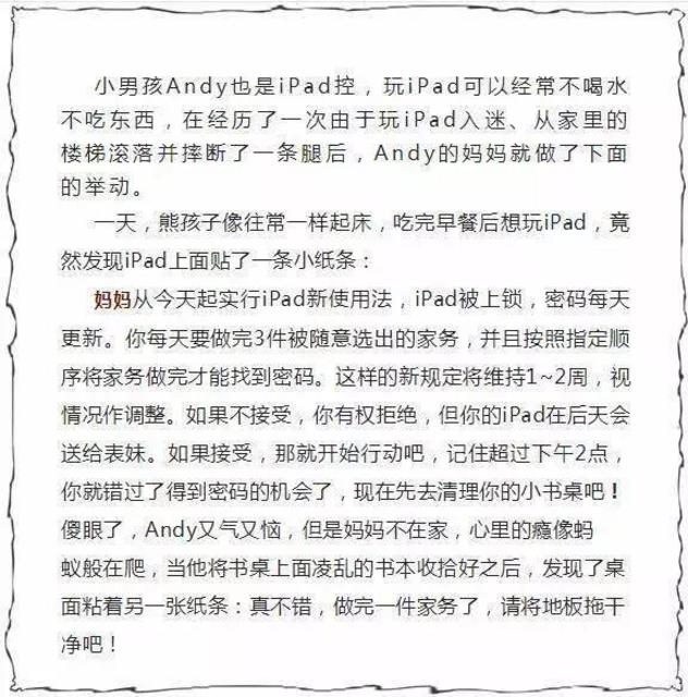 今天看到一则新闻,说一女生经常晚上熬夜看手机招致双眼暴盲,只能看到光。其实不止是这个事情,近年来全球范围内患眼部疾病的人数越来越多,我们不得不注重智能手机给我恩的生活带来的危害了!当然,我们更要让孩子们尽可能的少接触智能手机,愈加不能抱着手机不放手。可是怎样样让孩子放弃玩手机呢?下面这位妈妈的做法我觉得值得大家自创!