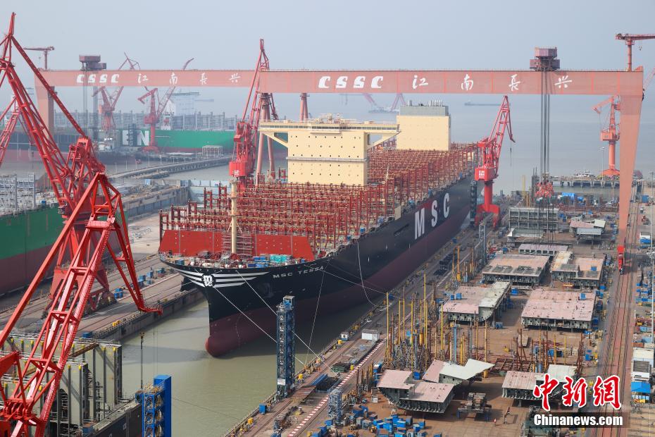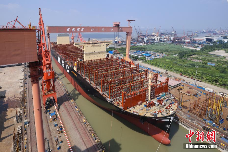 8月1日,中国船舶集团旗下沪东中华造船(集团)有限公司为地中海航运公司(MSC)建造的24116TEU超大型集装箱船在长兴造船基地顺利出坞。这是迄今为止全球建造的首艘最大装箱量集装箱船,也是继今年6月22日完工交付中国首艘全球最大24000TEU超大型集装箱船,沪东中华在全球顶级超大型集装箱船建造领域创下的又一项新纪录,标志着世界超大型集装箱船建造进入中国船舶引领的新纪元。