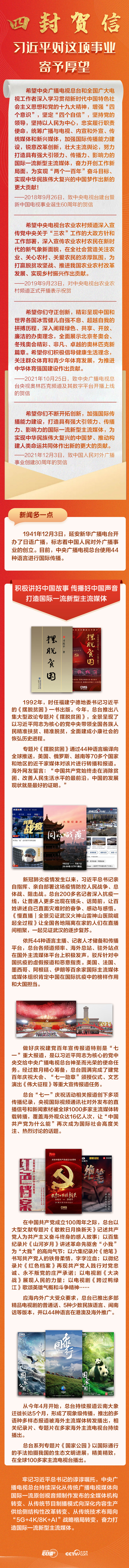 四封贺信,言之谆谆、寄予厚望,充分体现了以习近平同志为核心的党中央对中央广播电视总台工作的高度重视和亲切关怀,为新时代总台事业发展提供了根本遵循。