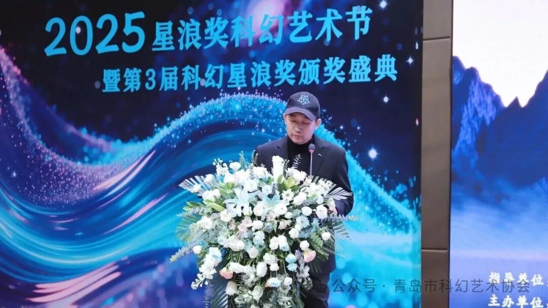 葛云峰在致欢迎辞中代表本届组委会,对莅临出席、热情助力第三届星浪奖科幻艺术节盛会的各级主管部门、影视文学艺术界、媒体界等领导和嘉宾朋友们表示了由衷感谢和热烈欢迎。并向与会嘉宾报告了前两届星浪奖所取得的成果。他表示,青岛是中国电影工业化的重要基地,我们因一项科幻公益事业从四面八方汇聚到青岛,创造了一种难得的相互赋能的氛围和产业生态。这种生态不仅让科幻创作者们找到了归属感,也让青岛成为了中国科幻艺术的重要阵地。期待科幻星浪奖能成为培养青年科幻人才的摇篮。同时,人工智能技术正以前所未有的速度重塑影视产业格局,期待更多的创作者能够将AI技术应用于科幻创作,共同探索科幻艺术的新边界和产业新机遇。星浪奖将牢记自己的使命,以推动和见证中国科幻影视和文学相互赋能、不断发展为永久公益追求,团结并服务好广大科幻创作者,共同为新时代科幻事业而努力!