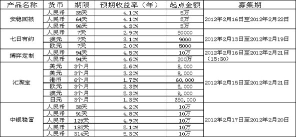 【理财时节】依据总行产品信息-图表提供 吴逴群 因2011年12月5日起,下调存款类金融机构人民币存款准备金率0.5个百分点,“提准”暂告结束,短期内伴随步伐一致的加息通道将逐步关闭,本编从理财的角度建议投资者可考虑购买半年至一年期的中期理财产品。