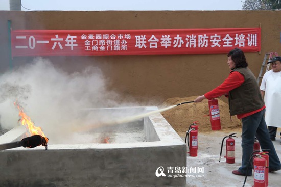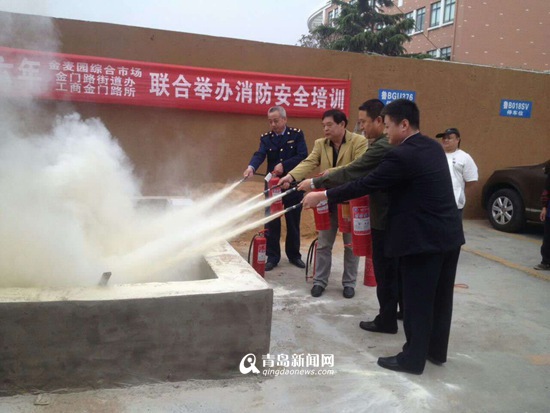 近日,市南区市场监督管理局、金门路街道、金麦园市场联合消防培训机构举行集贸市场消防安全培训现暨现场演练,指导商户观摩操作各种消防器材使用方法。增强商户消防安全意识,吸取各类火灾教训,提升了灭火和逃生自救能力,让市场主办单位、商户时刻绷紧消防安全防范这根弦,有效预防和杜绝重大火灾的发生。