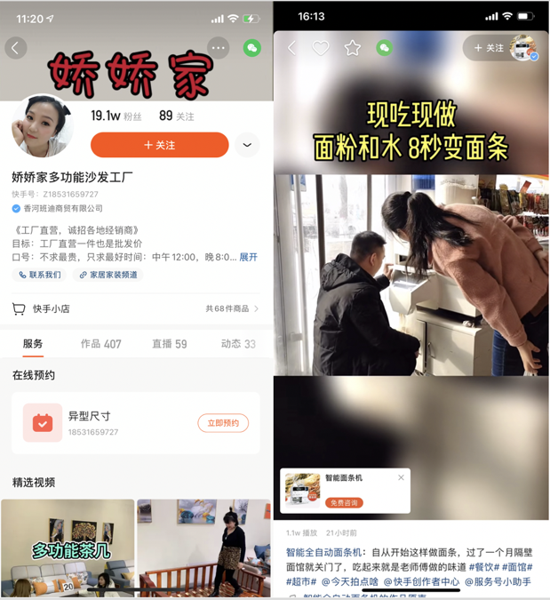 据了解,快手服务号这一产品前身为企业认证的商家号。去年10月,为更好服务企业商户,快手对商家号进行了升级。有别于纯内容生产者账号,开通服务号的商家将获得来自快手更多的流量扶持、商业变现能力、线索搜集工具等。