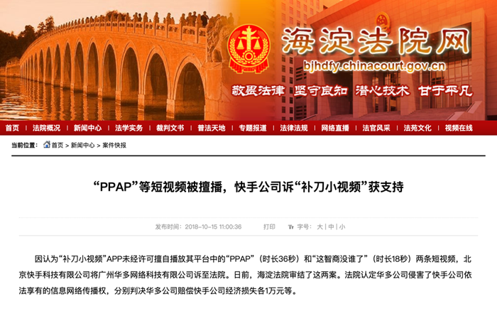 该案件被业内认定为“短视频构成作品”第一案。在该案中法院认可了短视频的作品属性:涉案短视频虽仅持续18秒,但是已构成具有独创性的完整表达,属于以数字化视频的形式发布在快手APP上通过网络传播的作品,作品类型为类电影作品;至此,法院也确定了短视频构成作品的标准:并不是所有的短视频都能够构成作品,是否能够构成作品需要根据具体的内容判断是否具有独创性,判断的标准和长视频应当是一致的。该案被评为2018年度中国版权行业十大热点案件、2018年度北京市法院知识产权司法保护十大典型案例。