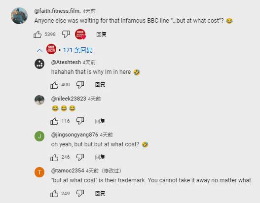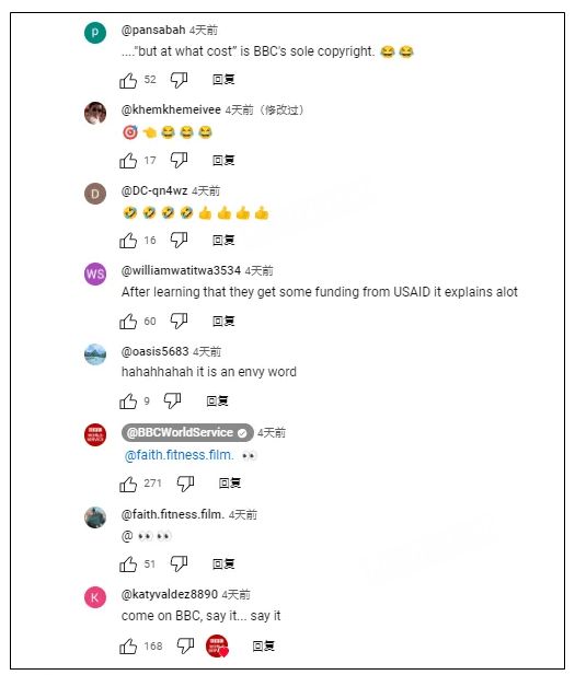 一个看完视频也没等到抹黑中国内容的外国网友,在评论区诧异地问:“除了我之外,还有其他人在找BBC那句‘但代价是什么呢’的话吗?”