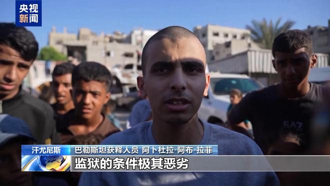 巴勒斯坦获释人员亚辛·阿布·阿姆拉:监狱的条件糟透了,饥饿、压迫、殴打,一切都糟透了。那里没有吃的,也没有喝的。我已经四天没吃东西了,刚刚才有人给了我两块糖。