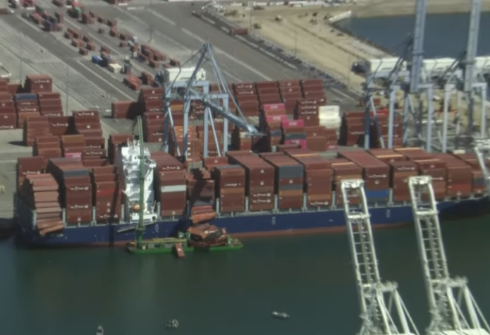 美国长滩港一货船发生事故 60多个集装箱坠入海中