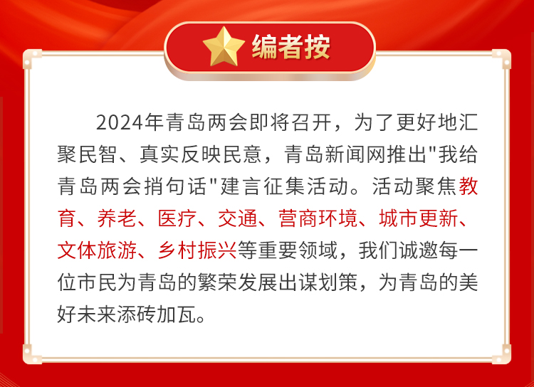 网友@北船余音:青岛是旅游名城,旅游旺季游客多,景区的停车费用、门票及景区内消费都较贵。希望在旅游淡季时可以制定一些旅游惠民政策,为市民推出低价的旅游套餐,尽可能让利于民。