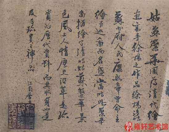 据悉,上述这副民国时期《姑苏繁华图》现已亮相深圳雍轩艺术馆,欢迎广大藏友莅临鉴赏!