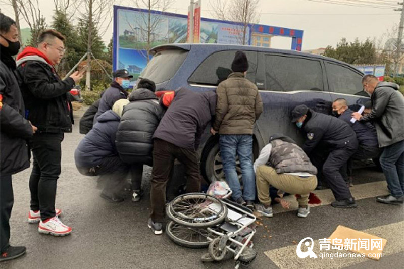 @人间城a在微博中提到: 2月24日上午10点55分左右,(西海岸新区)六合社区北门,一位独居老人坐轮椅过马路时被直行车撞到车底,一位身穿地铁工装的年轻人及时拨打120和110报警。在等待急救车的20分钟里,年轻人还奔走找人,一起抬起了涉事的商务车,将老人从车底解救出来,为急救人员争取到了宝贵的时间。