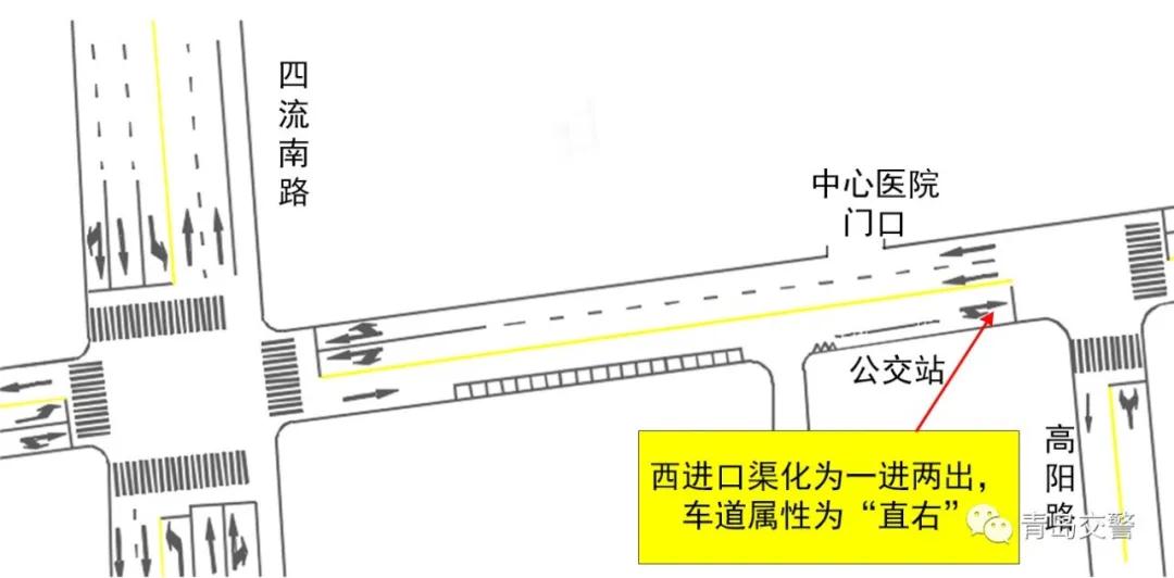 四流南路开平路路口东侧路宽10米,路口车道属性保持现状;