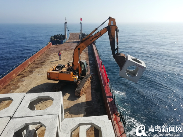 据悉,中交一航局二公司承建的国信海洋牧场项目位于青岛市即墨区千里岩西南侧,工程内容主要为海洋牧场人工鱼礁施工,包括礁体的制作、运输与投放等,共计投放方形混凝土构件4000个、鱼礁3.2万空方,建成人工鱼礁区面积约6.4公顷,并配合增殖放流刺参、鱼类、梭子蟹等苗种,建立起优良的海洋生态渔业基地,项目于2020年2月开工,建设工期四个月,业主单位国信集团为青岛唯一一家将海洋产业纳入主业定位的市直国有企业。