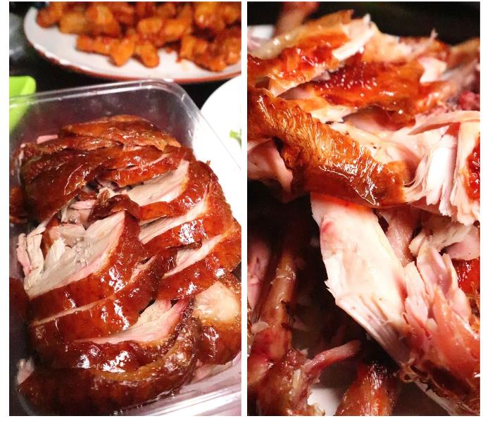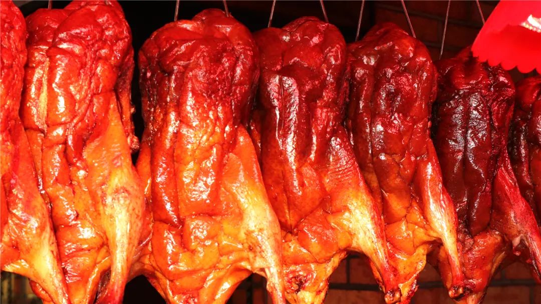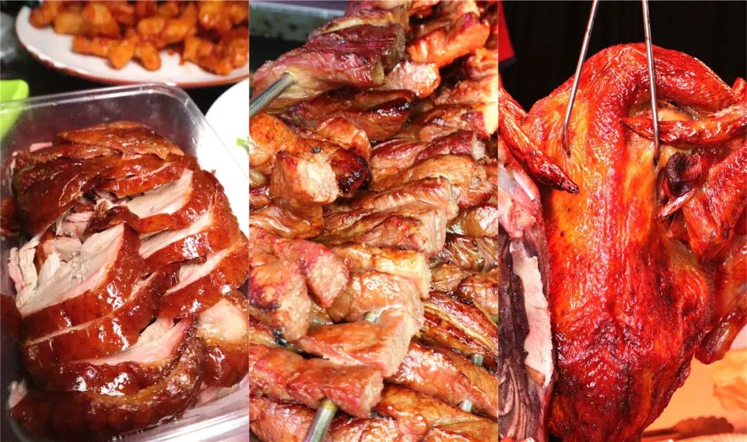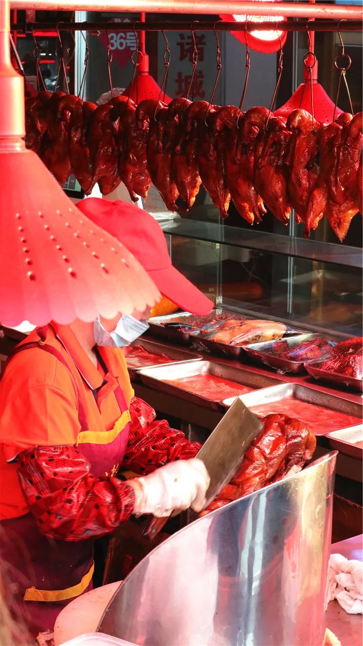 与海鲜区比邻的是市场的熟食区,烤鸭、烤肉、烧鸡、卤味、麻辣小海鲜……100多米的小巷子满满当当50多家熟食档口,肉香、酱香随风飘荡在整个市场上空,勾人直落口水!