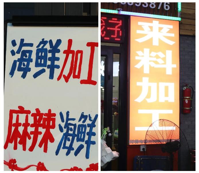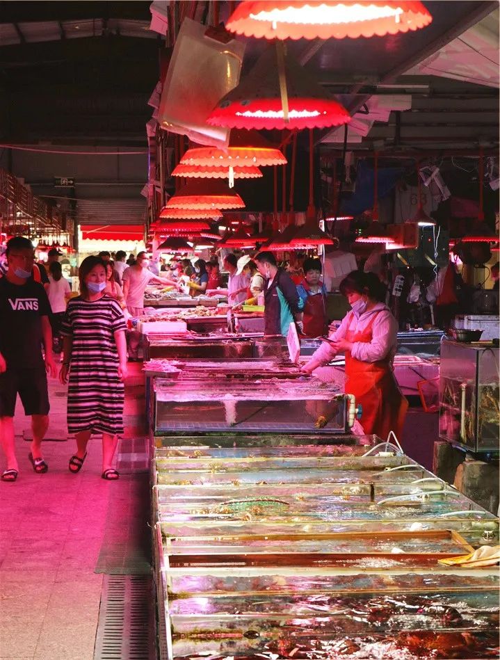 在海鲜区的正对面,还藏着一条埠西市场版的“营口路”!每到饭点街边酒家的霓虹灯闪烁起蝉翼般的灯光,轻车熟路的食客们就会带着从市场里采购的新鲜海货直接杀到这里。