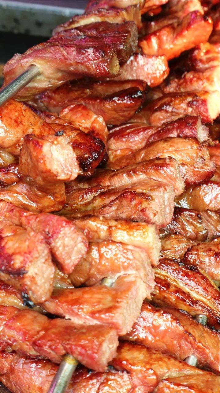 大串的烧肉,孜然和辣椒的香气顺着鼻腔直窜天灵盖!