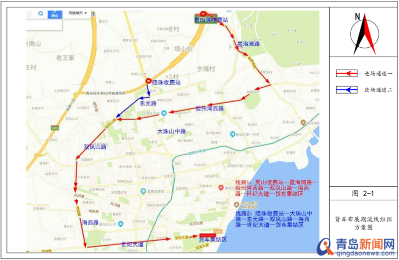 过境青岛西海岸新区的车辆,请选择绕行青兰高速、疏港高速、沈海高速等道路。