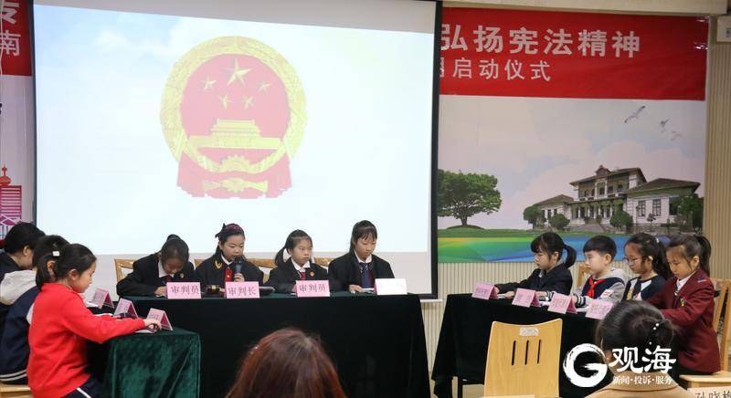 青岛日报社/观海新闻12月4日讯 “现在开庭!”随着法槌落下,青岛市实验小学模拟法庭活动拉开帷幕。12月4日是第7个国家宪法日,市南区教育系统宪法学习宣传教育月在市实验小学启动,通过形式多样的活动推动宪法宣传,提升广大师生的学法用法意识和水平。