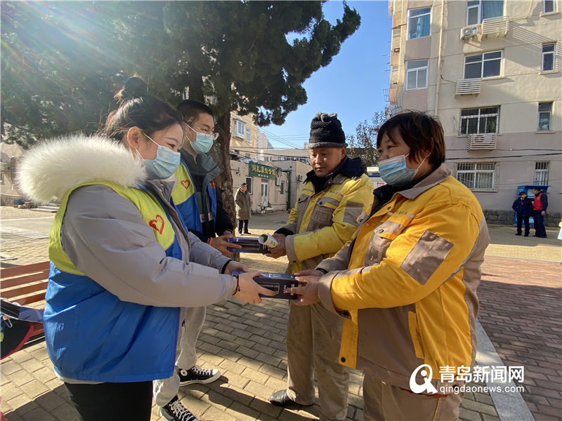“12.5国际志愿者日”市南共青团新时代文明实践青年志愿服务活动在云霄路社区同步启动,来自“青春志随行”青年服务队、中交一航局二公司“蓝马甲”志愿服务队、青岛巴士“红叶红”志愿服务队的30余名青年志愿者,开展了社区便民服务、垃圾分类宣传、致敬城市奉献者暖冬行动三个版块服务活动,100余名社区居民、环卫工作人员、快递小哥等陆续前来参与。