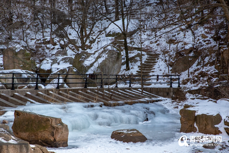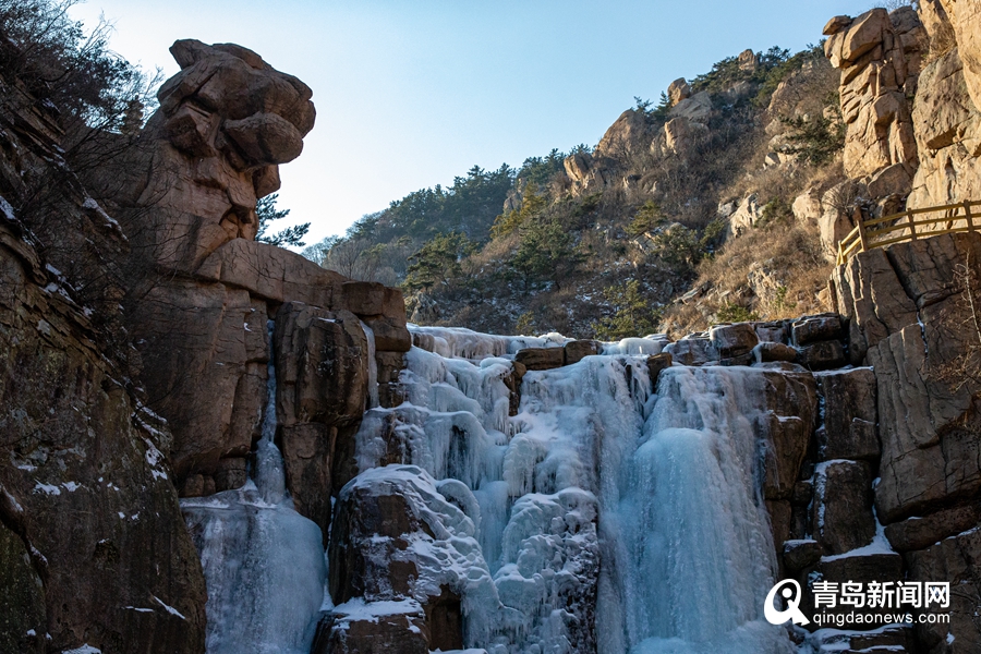 青岛新闻网1月8日讯(记者 孙志文 摄影 陈睿卿)近日,接踵而至的寒潮让青岛的气温骤降至零下十几度。极寒天里,崂山北九水又出现了壮观的“冰瀑奇景”。晶莹剔透的冰柱“飞流直下”,与周边的白雪相映成辉,景色壮美。下面,就跟随摄影师的镜头欣赏一下吧。