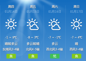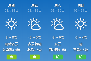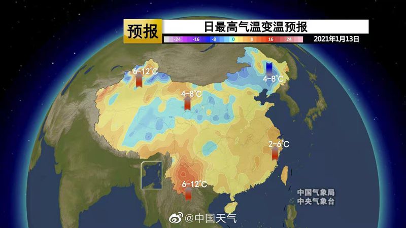 就全国范围来说,也迎来了大回暖。@中国天气发布消息称:送走了跨年大寒潮、新年冷空气后,近日我国中东部地区终于迎来了大回暖。今天(13日)华北的北京、太原、石家庄等地最高气温将升至10℃上下;周五杭州、长沙、南昌等江南城市气温冲击20℃,暖如三月。