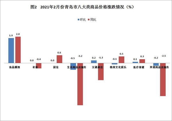 2月份,青岛市CPI工业消费品类价格环比略涨0.1%,同比下降1.6%,整体保持稳定。