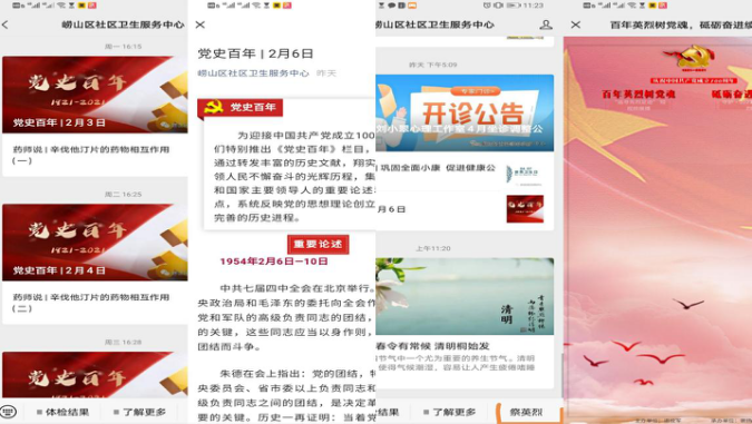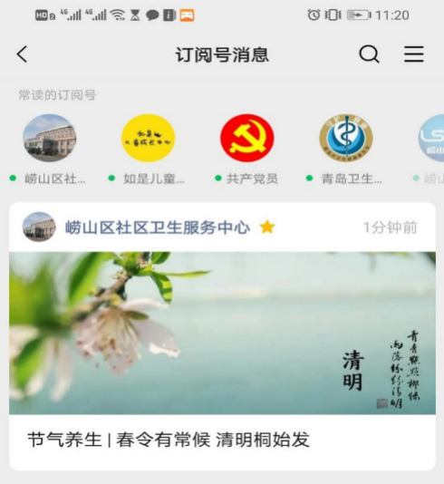 为了让更多居民了解传统文化,中心通过微信公众号推送清明节气知识,丰富居民对中华优秀传统文化的认识和了解;推出24节气中医养生栏目,协助提高居民健康素养。