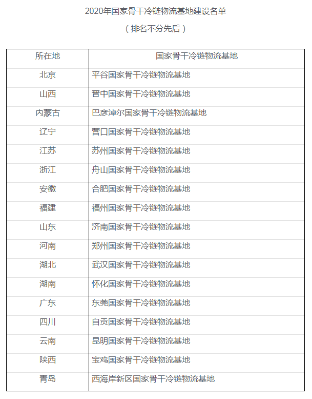 青岛市依托西海岸新区国家冷链物流基地成功入围,成为计划单位市中唯一入选城市。