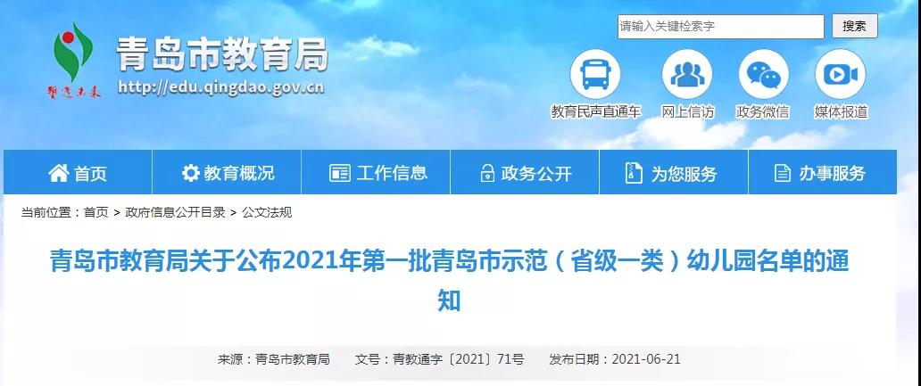 2021年第一批青岛市示范(省级一类)幼儿园名单