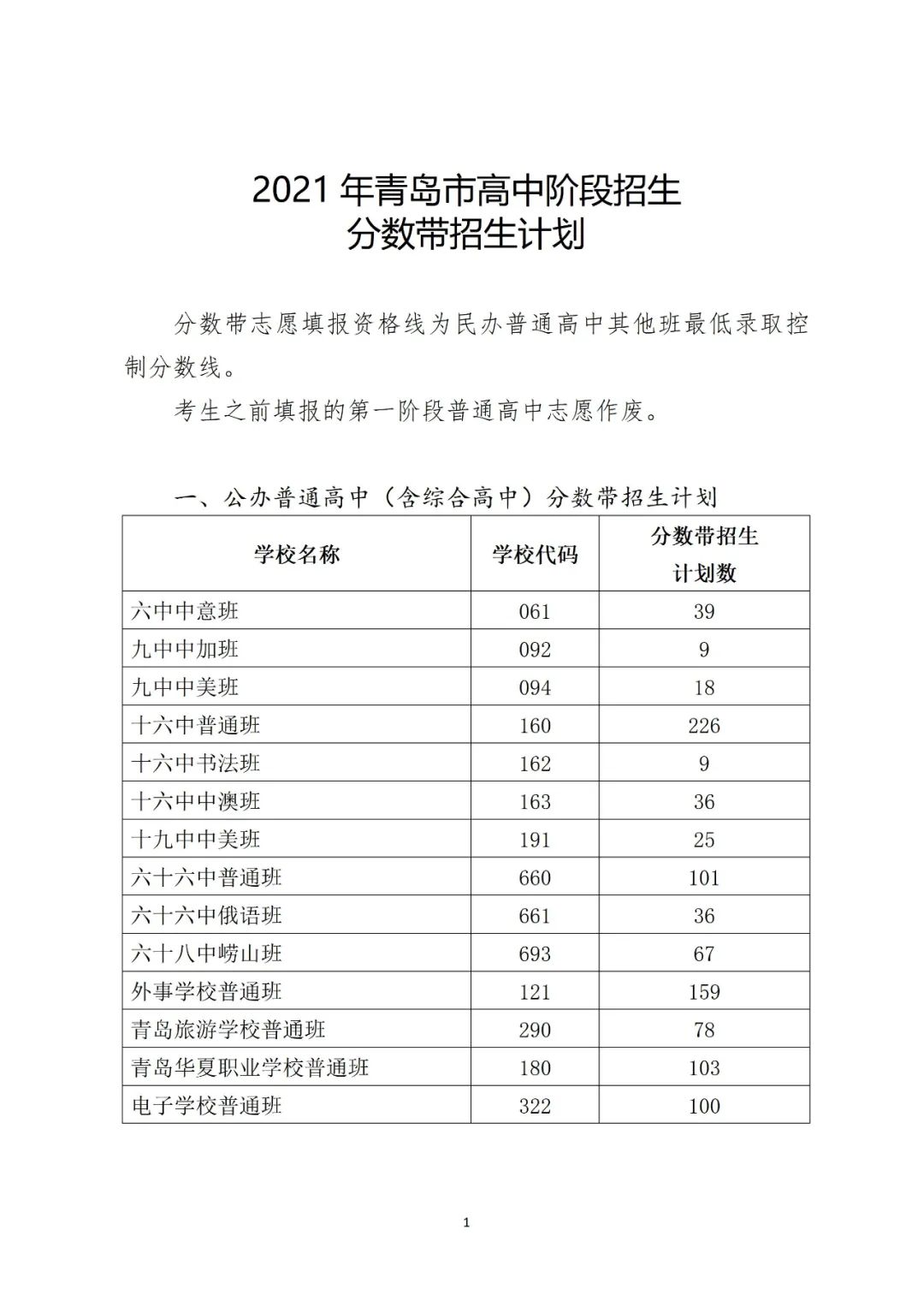 2021年青岛市高中阶段招生分数带招生计划公布,你家孩子能报哪个学校?