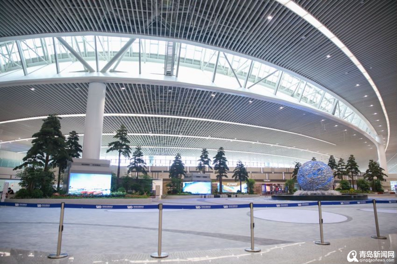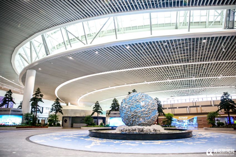 青岛新闻网7月13日讯(文/宋波鸿 图/张文博)青岛胶东国际机场,将于2021年8月12日零时正式实施转场运营,并同步关闭青岛流亭国际机场。目前,外形酷似“大海星”的胶东国际机场内部外部也正式露出真容。宽敞明亮的候机大厅内,设有高大的松树,以及由鱼组成的球形雕塑,内部细节高端大气。