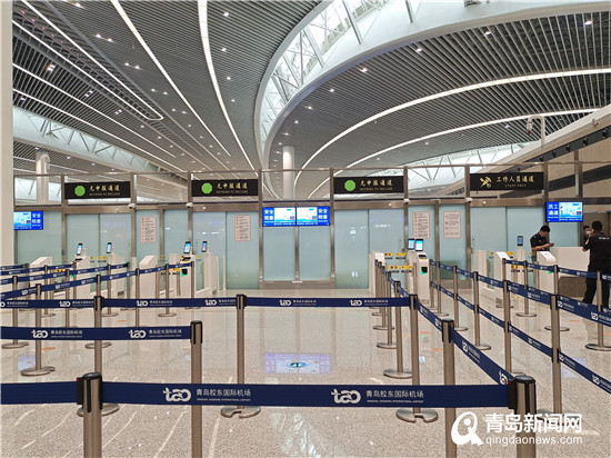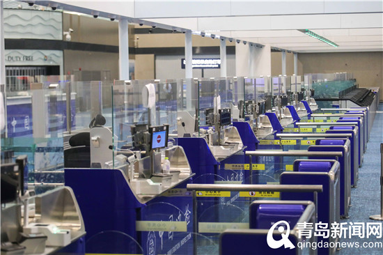 7月12日,山东出入境边防检查总站青岛机场出入境边防检查站位于胶东国际机场口岸的出境查验区域。解豪 摄