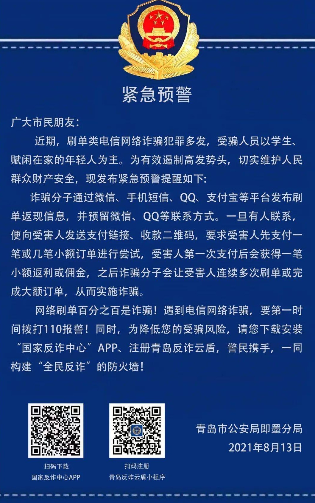 青岛日报社/观海新闻8月13日讯 刚刚,青岛市公安局即墨分局发布紧急预警。
