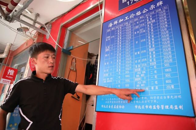 “海鲜加工的价格本来就有,在这个基础上,我们分别从营口路农贸市场及周边餐饮消费领域市场的不同区域抽取不同的价格公示牌,通过台东益家协会,找到具体的餐饮经营业主,联合相关专家,来制订一个大家都能接受的海鲜加工价格公示牌,海鲜加工的价格就得到了统一。散装啤酒因为各家门店的进货渠道和种类不一,在价格实现不了统一的情况下,我们要求店家在显眼位置处张贴价格公示牌。”市北区市场监督管理局工作人员韩林告诉记者,以前因为各家价格不统一,有外地游客消费后发现,其他家同样的海鲜加工费更便宜,导致了不少消费投诉的出现。